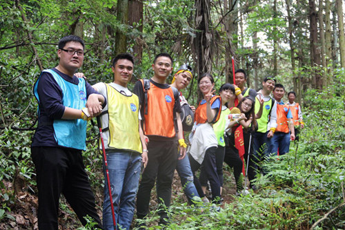 紀(jì)龍山登山過程中,大家井然有序,男隊(duì)員主動(dòng)讓女隊(duì)員走在隊(duì)伍的中間,幫女隊(duì)員背起了包,拎起了水,遇到陡坡的時(shí)候,隊(duì)員們手拉手,相互提醒,有女隊(duì)員體力不支時(shí),隊(duì)員們又送巧克力,又送紅牛飲料,伙伴們相互扶持,共同進(jìn)退。